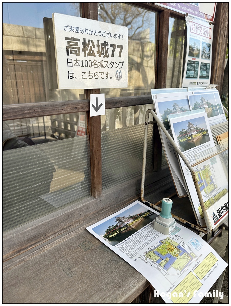 在這裡還發現了「高松城的日本100名城印章」­,身為歷史愛好者,能親手蓋下日本百大名城的印章,為這趟旅程增添了特別的紀念意義!