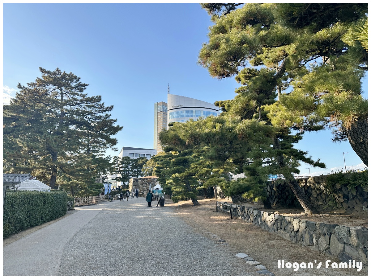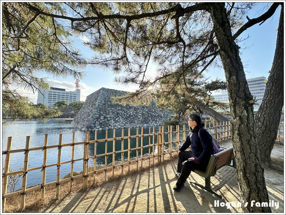 在天守閣遺跡旁,找個長椅坐下,冬日暖陽穿透樹梢灑落在身上格外溫暖,這裡所有的一切就像默默訴說著城堡的興衰歲月,彷彿能聽到歷史的回聲。