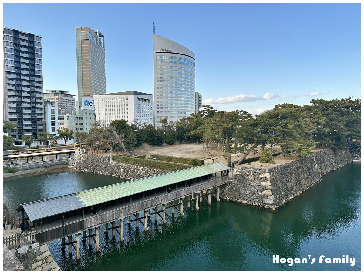 我們緩步走上橫跨護城河的石橋,這裡不僅是通往高松城的要道,更像是連接古老與現代的通道。