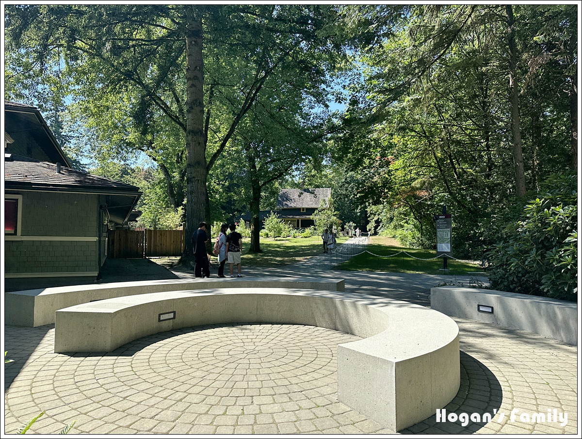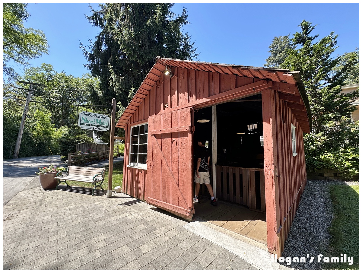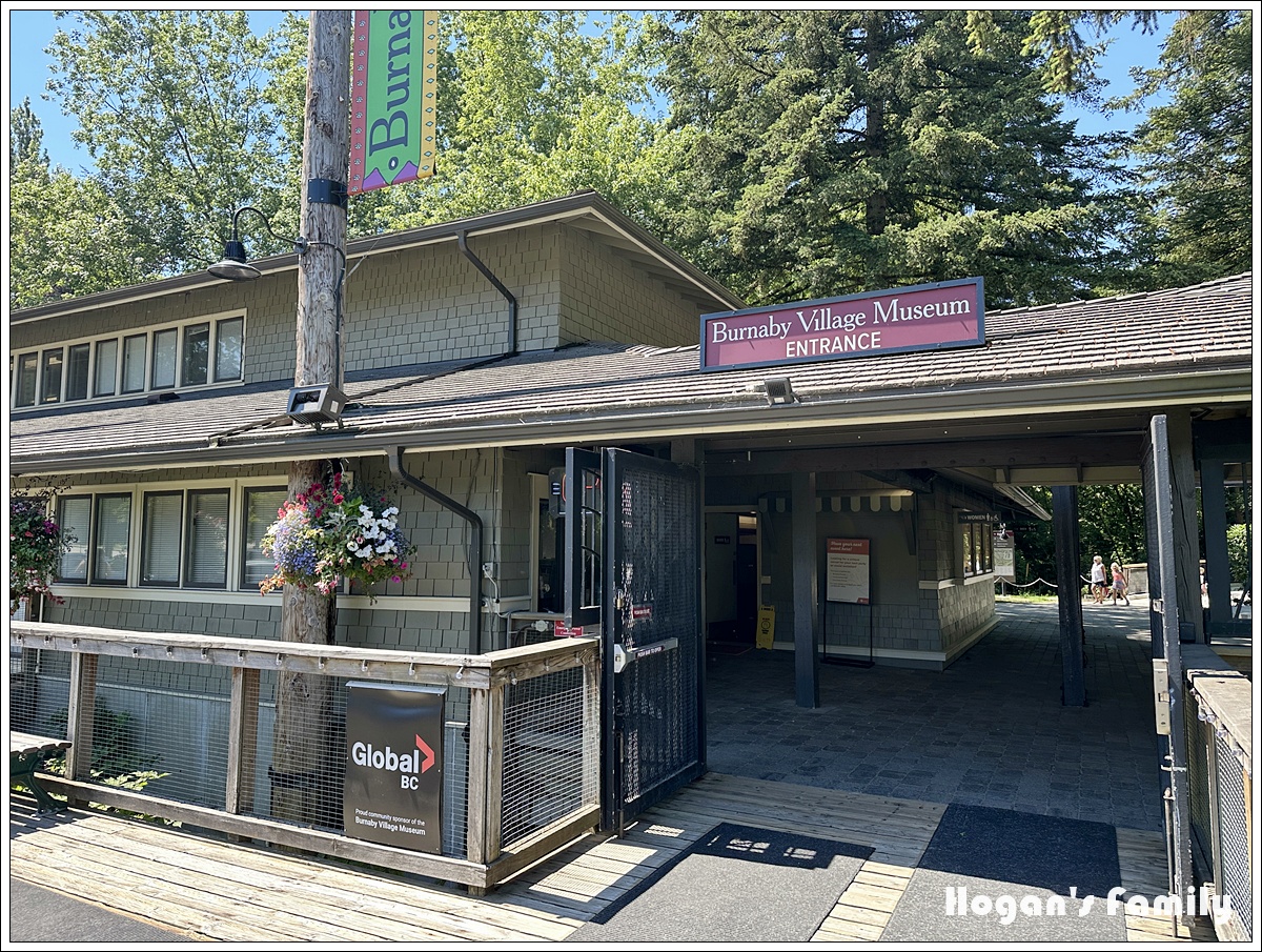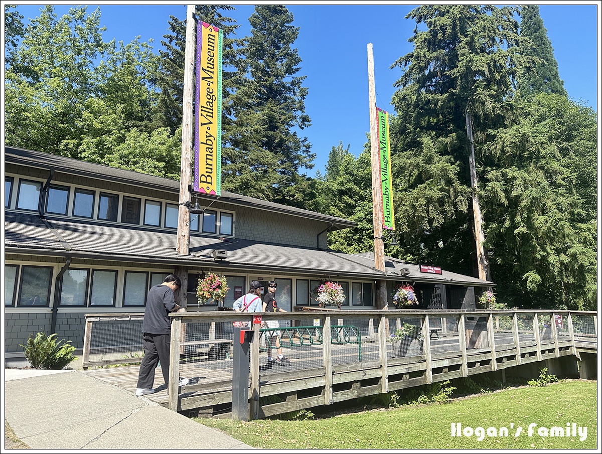 抵達這裡映入眼簾的是博物館入口處那棟建築,周圍綠意盎然的樹木與花卉將其環繞,鮮豔的「Burnaby Village Museum」旗幟迎風飄揚,彷彿在熱情地歡迎著每一位訪客。