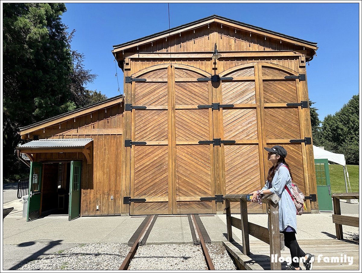 博物館內最讓人印象深刻的,莫過於那座巨大的木製車庫,這座宏偉的木質建築,擁有著巨大的雙開門,顯得氣勢磅礴,門前的鐵軌更是直接將我們帶回到那個電車盛行的年代。