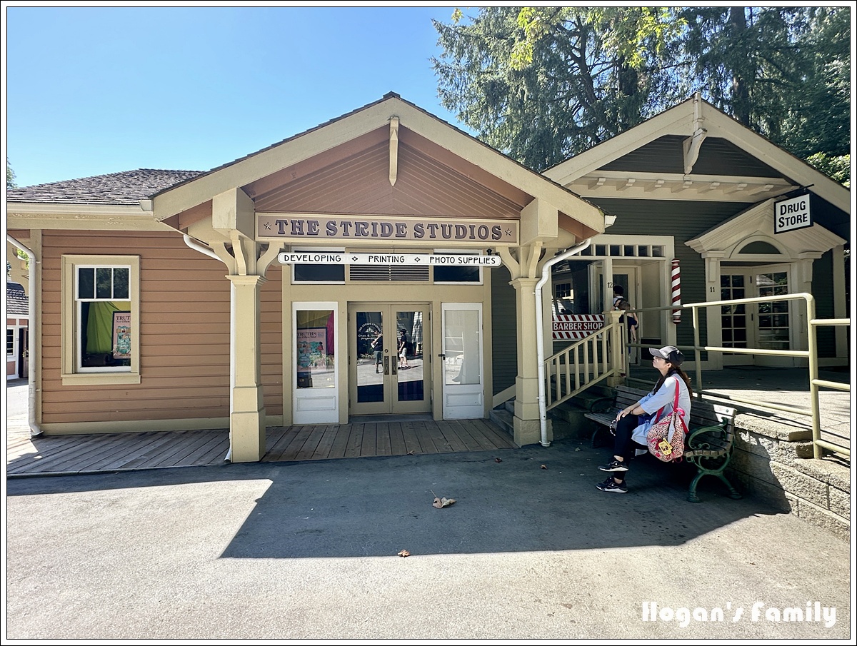 此外,博物館裡還重現了當時的商業街景,我們看到了「The Stride Studios」和旁邊的「Drug Store」,這兩棟建築風格統一,外牆是木質的,散發著古樸的氣息。