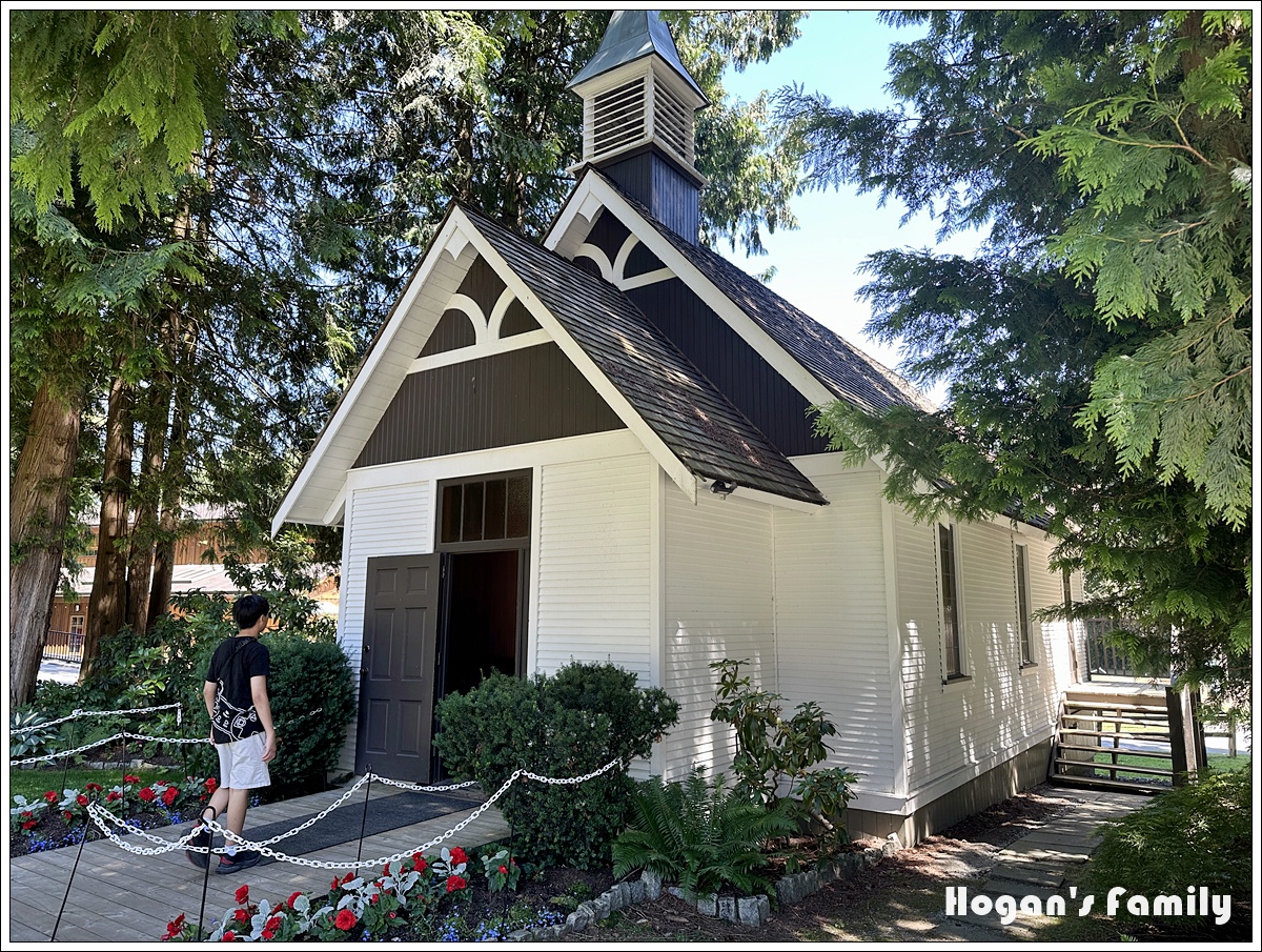 在博物館的深處,我們發現了一座小巧而精緻的白色小教堂,教堂外觀白色的木質外牆與深色的屋頂形成對比,頂部的尖塔更顯得肅穆莊重。