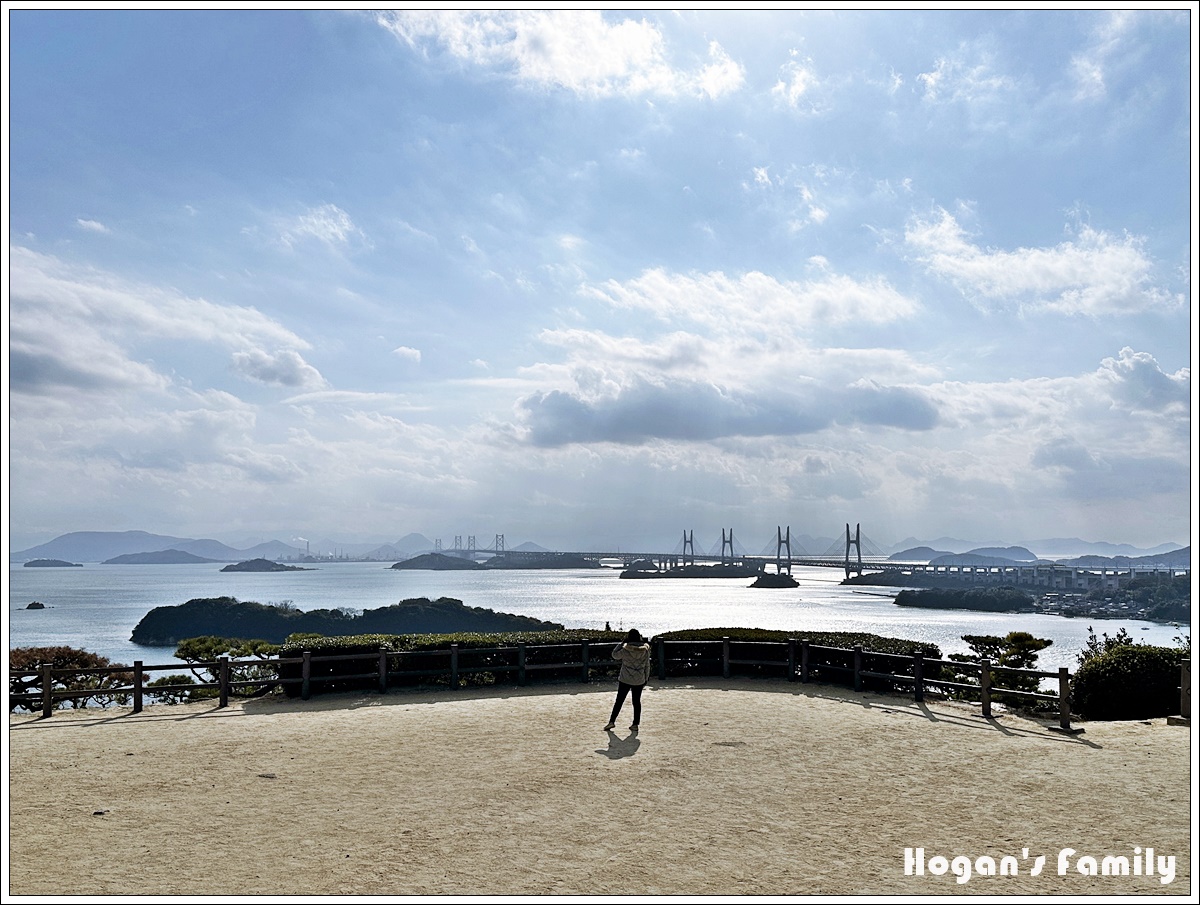 其最吸引我們的區域是一片開闊的空地,正對瀨戶大橋,景色開闊無死角,我們特地慢慢走向中央,拍下了背影與橋梁共存的照片。