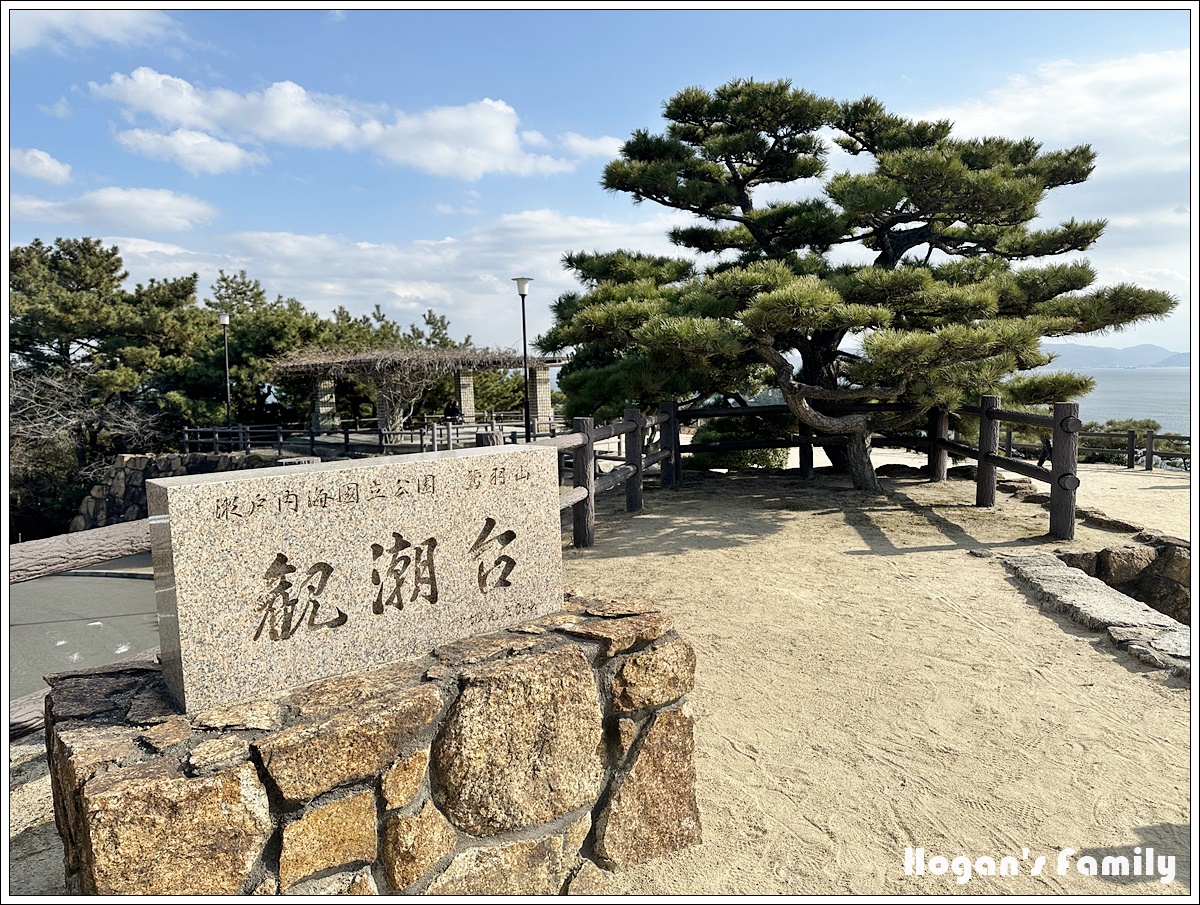 從岡山出發,自駕約1小時即可抵達鷲羽山觀景台,這裡設有完善的停車場與步道,空氣中瀰漫著海的氣息,松樹環繞、景觀遼闊,是個讓人立刻放鬆的地方。