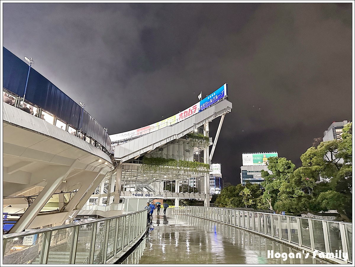 步出球場回頭望去,橫濱球場在夜色與雨後的濕氣中顯得格外迷人。