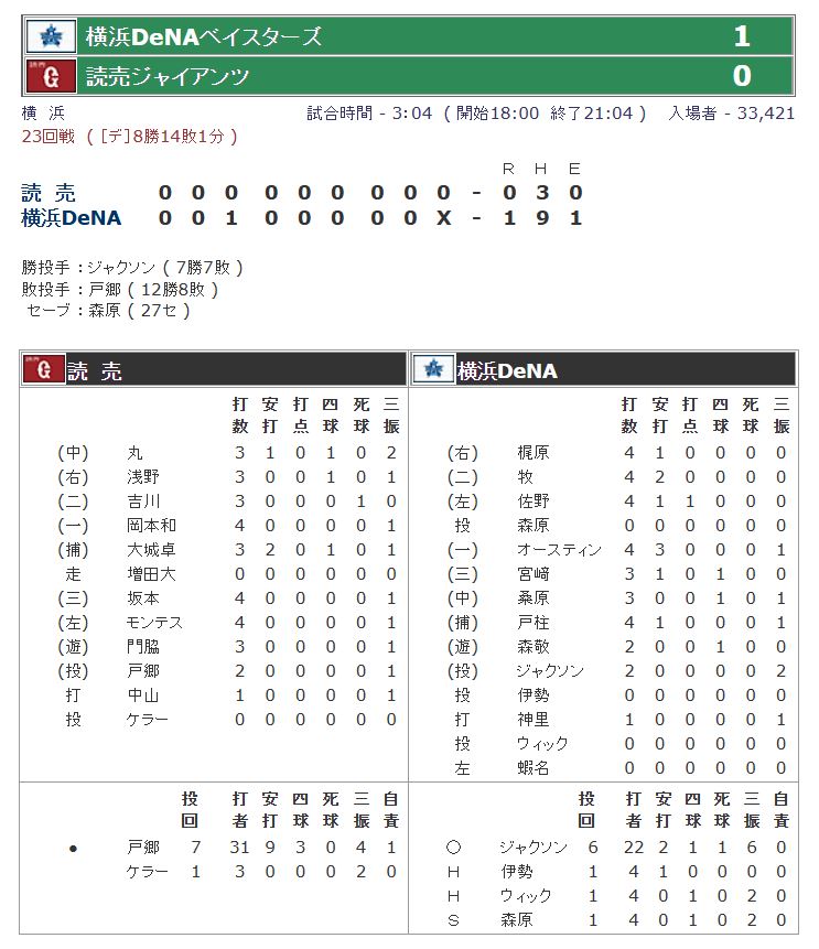 橫濱隊的投手是背號42號的Andre Jackson,而巨人的先發則是戶鄉翔征,此時的計分板顯示比數還是0:1,戰況膠著!我們的心情也隨著場上的投打對決而起伏著!